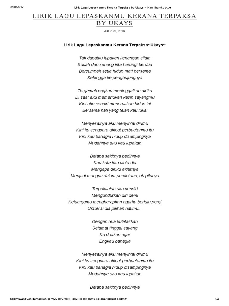 Lirik Lagu Lepaskanmu Kerana Terpaksa By Ukays Kau Ilhamku Pdf